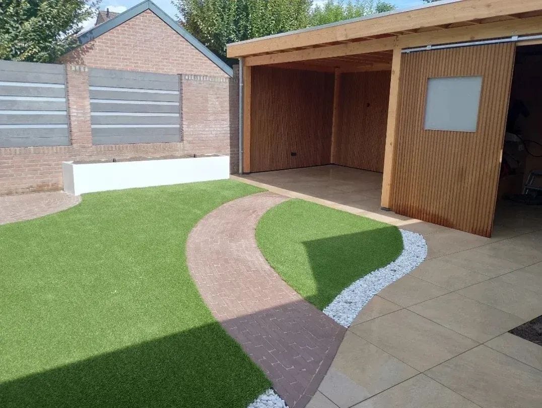 Kunstgras is de ideale oplossing voor wie een altijd groen gazon wil zonder het intensieve onderhoud van maaien, verticuteren en sproeien. Het is extreem slijtvast, ziet er tegenwoordig zeer natuurlijk uit en is bestand tegen wisselende weersomstandigheden. Vooral in kleinere tuinen of schaduwrijke plekken waar echt gras moeizaam groeit, biedt kunstgras een prachtige, onderhoudsarme uitkomst.